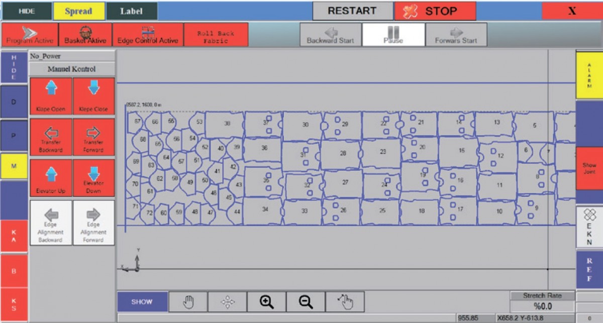 Машина для настилания доступна в различном исполнении, с рабочей шириной от 150 до 260 см. Предусмотрен сервер технической поддержки для сбора и анализа данных, мониторинга процесса производства и его эффективности. Проекционная система позволяет проецировать лекала на область настила, получать больше информации и своевременно выявлять возможные пороки ткани. Доступно дистанционное управление процессом настилания, а также дистанционный поиск и устранение неисправностей. Встроенная технология Fabric Vision обеспечивает безошибочность процесса.